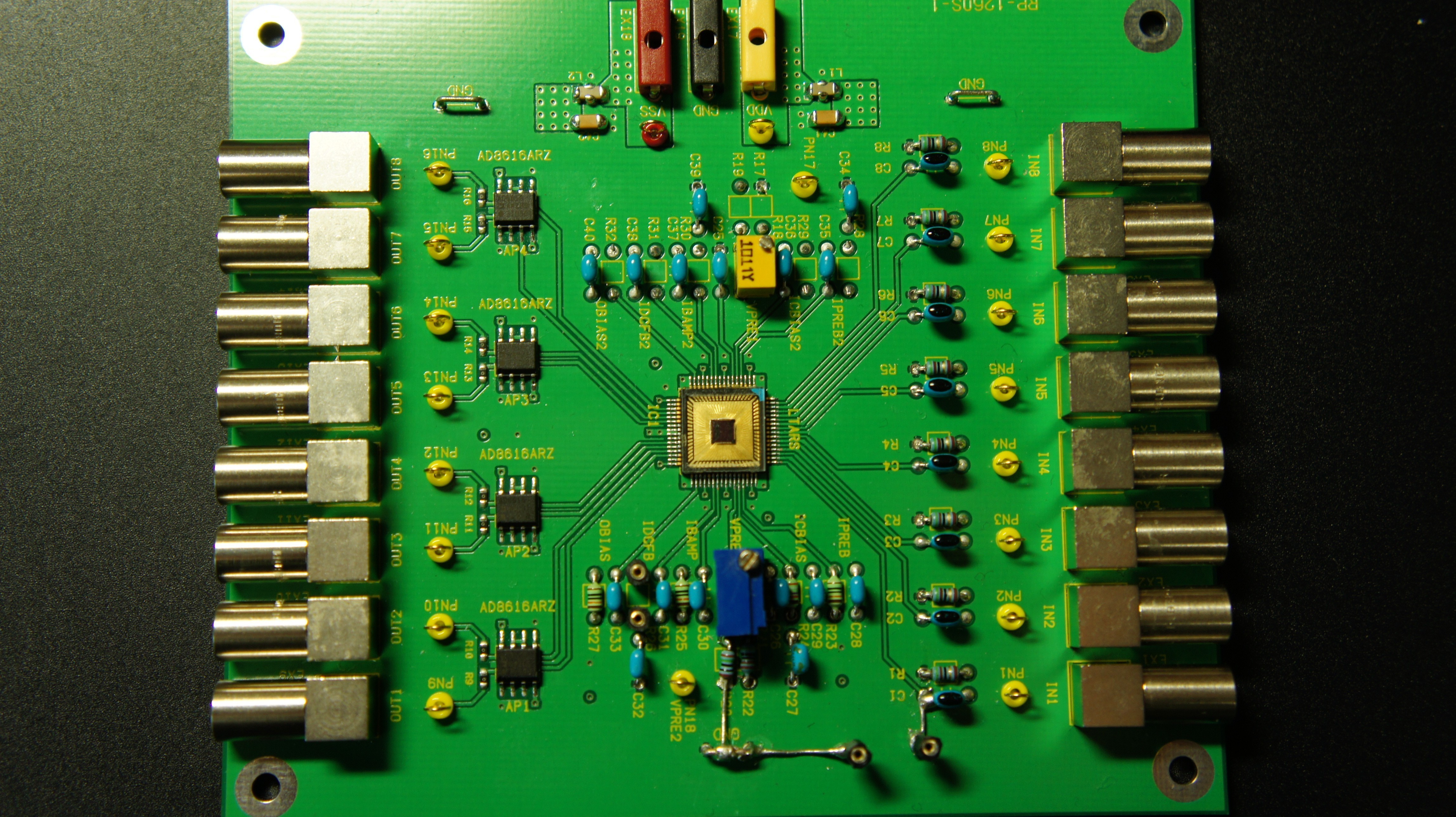 LTARSasicのテストボードです。LTARSasic1チップを実装し、各チャンネルの出力にバッファーアンプが接続されています。